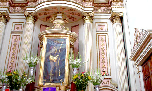 En el exterior del templo podemos ver en una placa de azulejos de talavera un mensaje alusivo a la fundación de este templo que dice así: «A la memoria de Bernardino Alvarez, natural de Utrera, Sevilla, fundador de la orden mexicana de los hipólitos. Aprobada por el arzobispo D. Alonso de Montufar en 1569 y confirmada por Gregorio XIII y Sixto V en 1589. Fundó los hospitales de san Roque, Puebla, Santa Cruz de Oaxtepec, Mor. y santa María de la Consolación de Acapulco, Gro., la de santa María de Belén, Perote y Concepción de Jalapa y San Martín de Veracruz para alivio de caminantes y enfermos. Murió en México en 1584. Museo Regional del Estado» y firma Miguel E. Sarmiento.